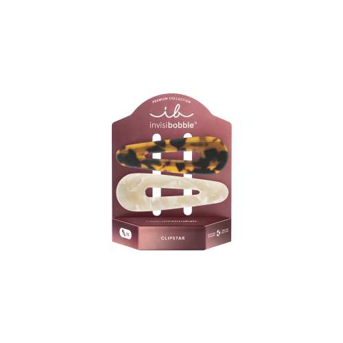 Wir stellen vor: Invisibobble IB Clipstar Premium Set mit 2 stilvollen Haarspangen mit bezaubernden Mustern. Diese mit HairLoveTech hergestellten Clips bieten einen sanften Halt, der Schäden, Abdrücke und Unbehagen minimiert. Verbessern Sie Ihr Haarstyling mit dem Premium Clipstar, die fashion mit dem Wohlbefinden Ihres Haares verbinden und für ein wahrhaft strahlendes look sorgen.