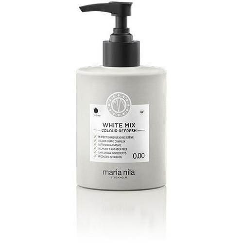 MARIA NILA COLOUR REFRESH ist ein Alleskönner zur Auffrischung und Intensivierung der Haarfarbe oder für temporäre Farbveränderungen. WHITE MIX enthält keine Farbpigmente und dient zum Mischen oder Abschwächen der anderen Colour Refresh Farbtöne. Die Intensität der Farbe hängt vom Mischverhältnis ab. Teste Deinen individuellen Mix auf einem Blatt Papier und einer Haarsträhne.