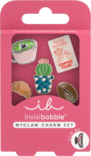 Das invisibobble MYCLAW SET Morning Nostalgia bringt entspannte Coffeeshop-Vibes in die MYCLAW Welt. Das Set besteht aus fünf detailverliebten Charms: Croissant, Kaffeebohne, Matcha Mug, Kaktus und Coffee Poster - inspiriert von modernen Café-Ästhetiken und urbanem Slow-Living.