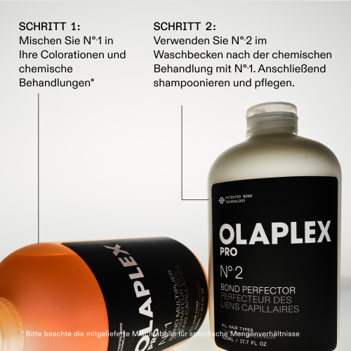 Diese Reparaturbehandlung nur für Profis ist der zweite Schritt des revolutionären OLAPLEX Original Bond Builders-Systems, das als Einzelschritt angeboten wird, sodass Sie es in Ihrem eigenen Tempo nachfüllen können. Während No. 1 (separat erhältlich) zu Farbe, Blondierung und chemischen Behandlungen hinzugefügt wird, ist No. 2 der Schritt nach der Farbe/chemischen Behandlung, um Haarbrücken zu reparieren, die von No. 1 möglicherweise übersehen wurden. Es baut alle drei Haarbrücken, einschließlich Disulfidbrücken, wieder auf, um das Haar in nur 3 Minuten vor dem Waschen stärker, geschmeidiger und besser kämmbar zu machen.